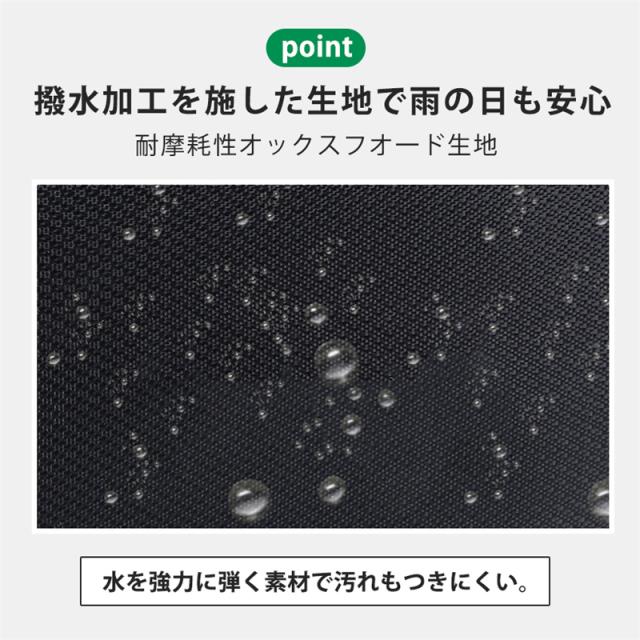 撥水加工のナイロン素材で濡れにくく、汚れもサッと拭ける♪