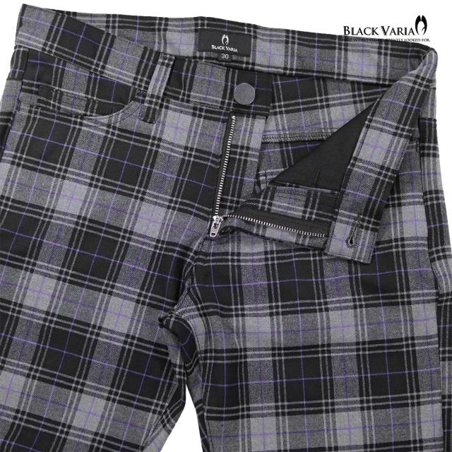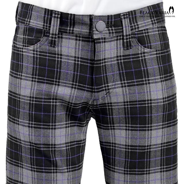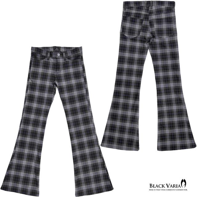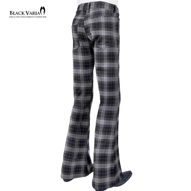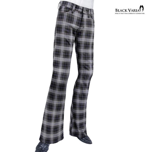 ベルボトム タータンチェック ブーツカット メンズ フレア ストレッチ ローライズ ボトムス パンツ(ブラック黒グレー灰) 232100