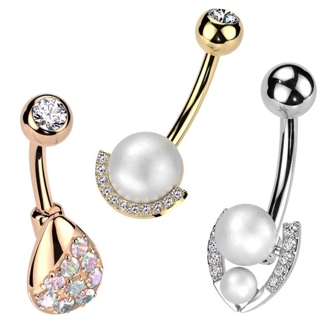 HSP ヘソピアス 14G パール ジュエル ティアドロップ しずく ホースシュー バナナバーベル 316Lサージカルステンレス [ ジュエリー ボディピアス へそピ ボディーピアス ]