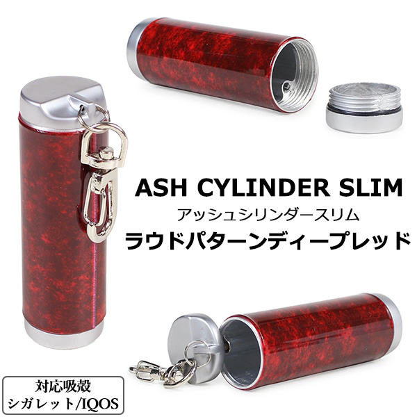携帯灰皿 スリム アッシュシリンダー ラウドパターンディープレッド‐ペンギンライター カラビナ付き アルミ 軽量 キーホルダー スライド式 アイコス ILUMA テリア TEREA