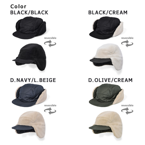 "ダウン×ボア、耳まで暖かいリバーシブルウォームキャップ"