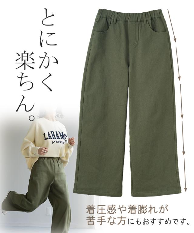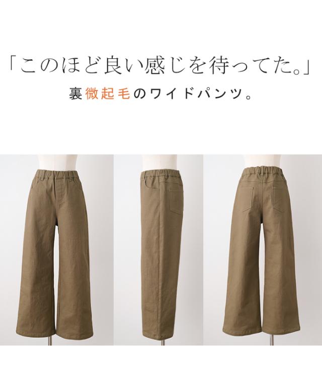 葛 城「新感覚ワイドパンツ」 裏起毛 疲れないパンツ パンツ レディース 微起毛 ワイド 大きいサイズ ボトムス チノパン チノパンツ ストレート ボトム 体型カバー ズボン ゆったり ハイウエスト ゴム ストレッチ 脚長 秋 冬 ベージュ カーキ HUG.U 秋新作