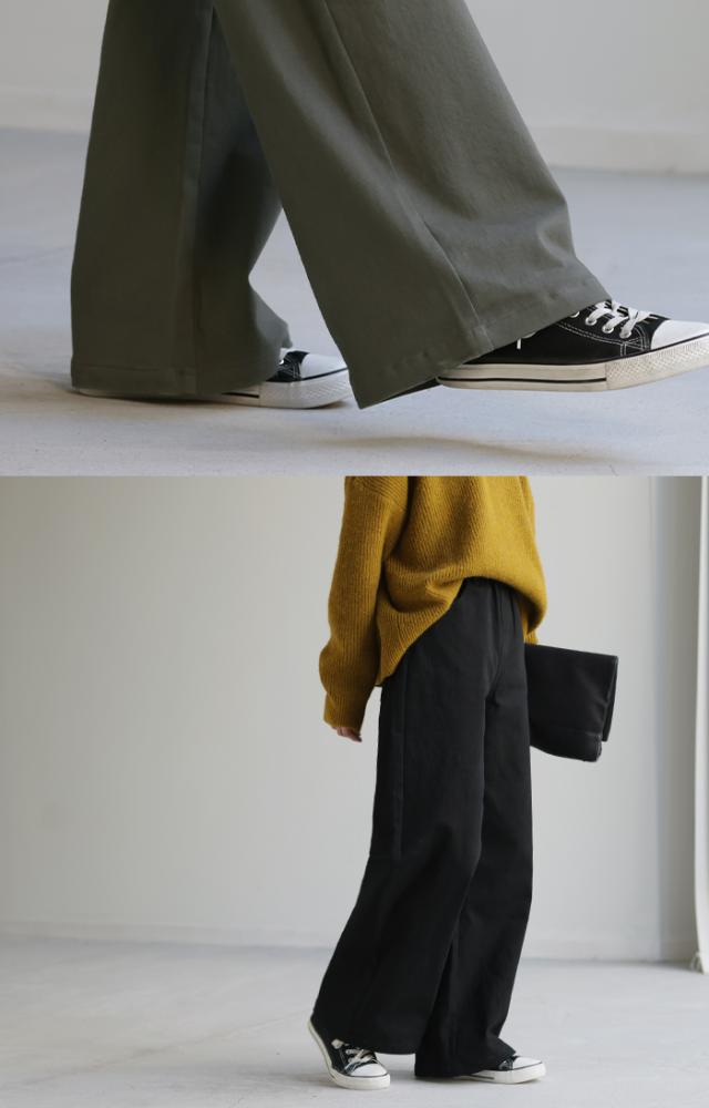 太すぎず細すぎず絶妙シルエットの裏微起毛のストレッチワイドパンツです。