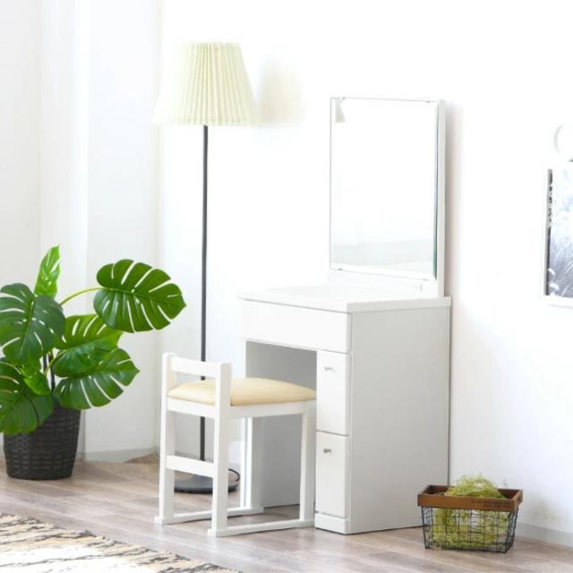 幅58.5cmでとてもスリムなドレッサーなので狭い部屋に置いても圧迫感がありません。シンプルなデザインで清潔感があり、引き出しも付いているので収納力抜群です。
