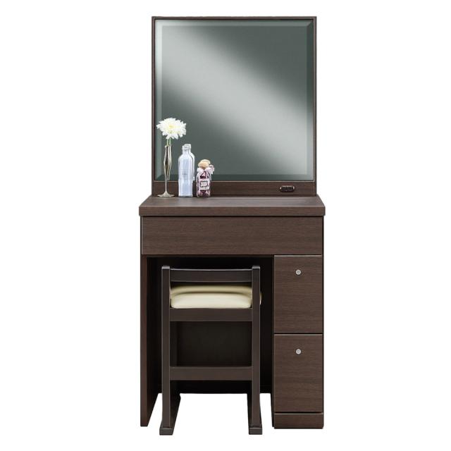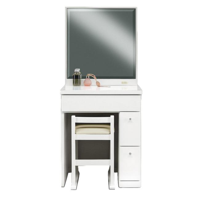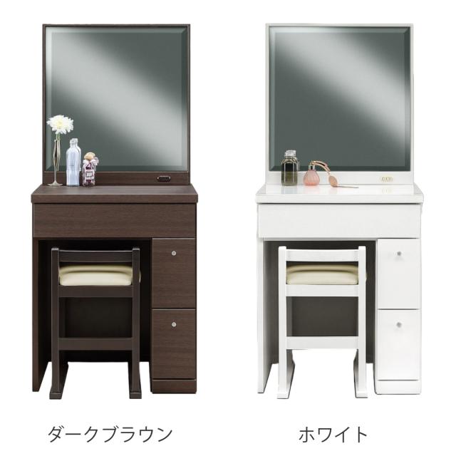 ドレッサー 鏡台 一面鏡 幅58.5cm プリマ ( 奥行41cm スツール付き コンパクト ミラー 鏡付き 引き出し 収納 コンセント 北欧 木目調 光沢 エナメル シンプル 白 ホワイト ブラウン )
