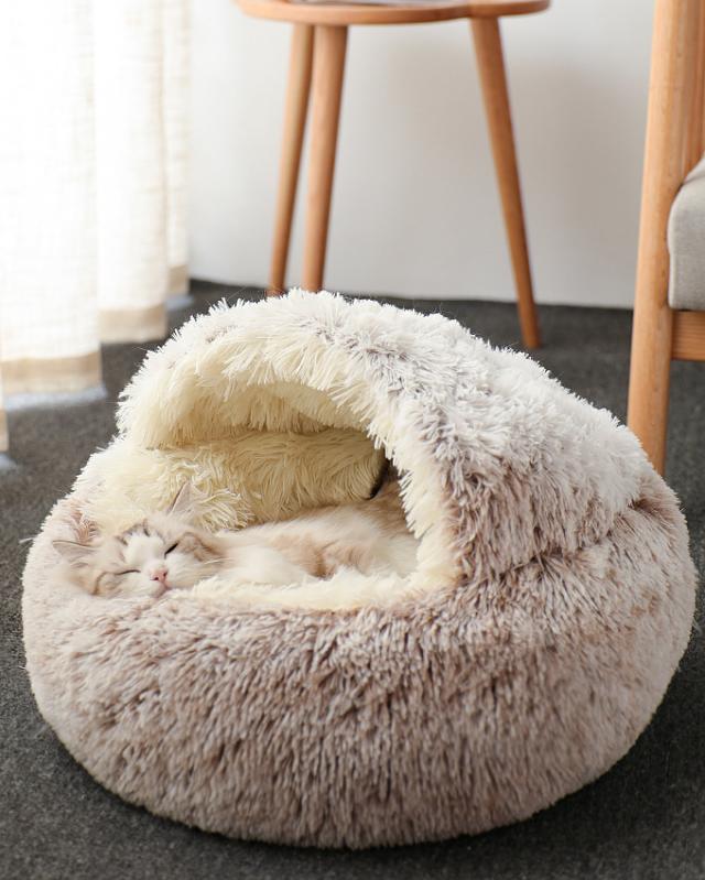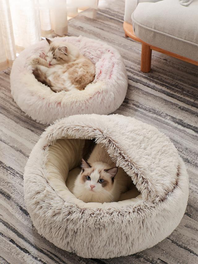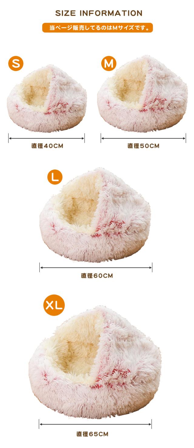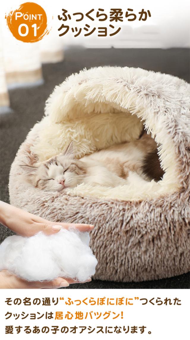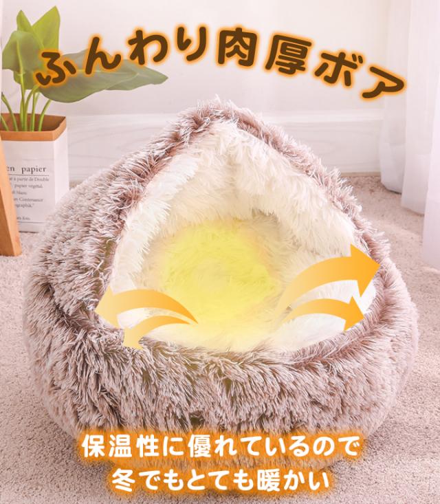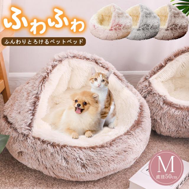 【M:直径50cm】ペット用品 冬 ペットベッド ドーム型 犬 ふわふわ 暖かい ペットクッション 犬 クッション猫ベッド 犬ベッド 小型犬 小型猫 おしゃれ 可愛い 洗える 滑り止め付き 柔らかい もこもこ 防寒 寝床 寝袋 ペットマット