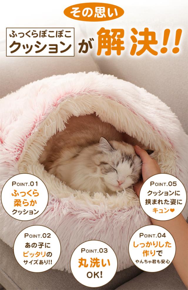 両面柔らかくて、長い毛で作られ、 ふんわり、冬寒さ対策として大人気! 洗濯機、手洗い可能いつでも清潔 裏面に滑り止め付きでずれにくい もぐりこむ猫の習慣で 猫ベッド入口の開口部が小さい設計されており 外の風を有効的に遮断できます 上部をつぶして平たくしても使用可能 厚みのある高弾力 ふわふわもふもふ、暖かくて、寝心地最高! ※モニター環境により多少色合いが異なりますので、予めご了承くださいませ。 |