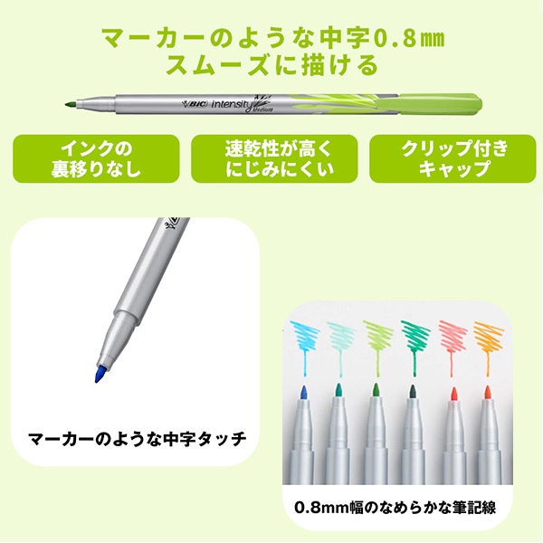BIC インテンシティ 水性ライティングフェルトペン 0.8mm 中字 12色