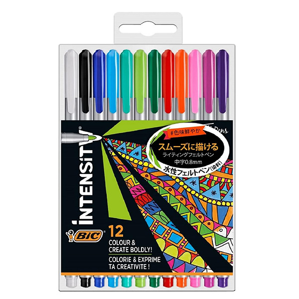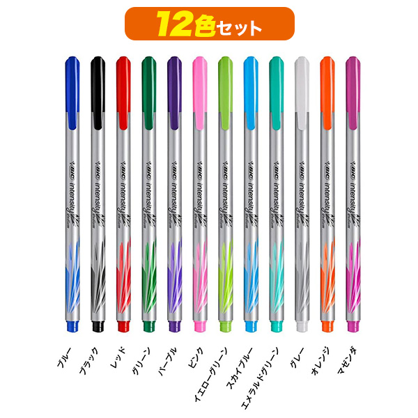 水性ライティングフェルトペン 12色セット 0.8mm カラーペン BICインテンシティ 水性ペン マーカー風 中字タッチ イラストペン 詰め合せ 文房具 文具 筆記用具 お絵描き イラスト 塗り絵 事務用品 かわいい おしゃれ オシャレ お洒落 カラフル お得セット カラーペンセット