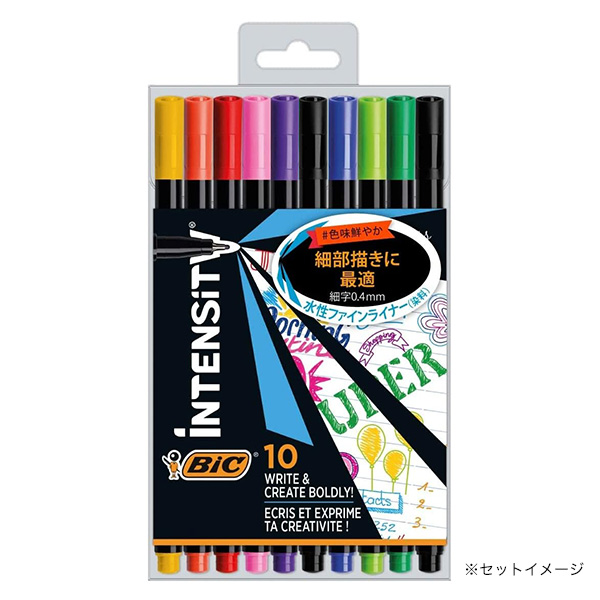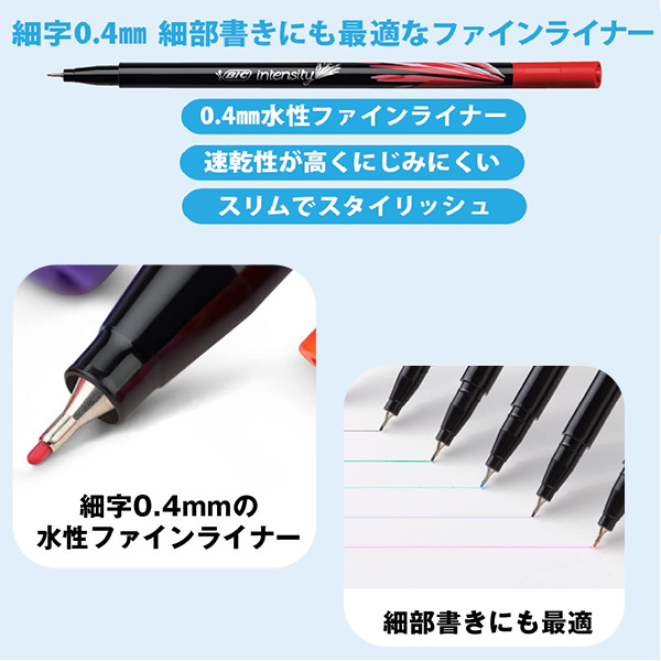 水性ファインライナー 9色セット 細字 0.4mm カラーペン BICインテンシティ 水性ペンセット お絵描き イラスト 寄せ書き メッセージカード 年賀状 ペン 詰め合せ 文房具 文具 筆記用具 事務用品 かわいい おしゃれ オシャレ お洒落 カラフル お得セット カラーペンセット