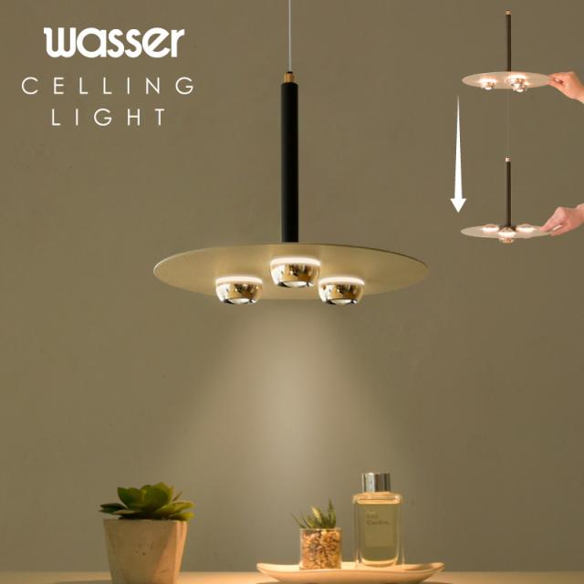取り付けたままコードの長さが変えられる!円盤型のモダンデザインにスマートな機能性を兼ね備えた、「wasser404_シーリングライト/3つ玉」です。