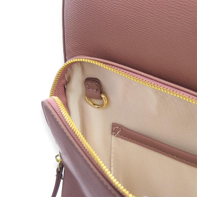 水濡れに強く、シミになりづらいPU合皮を本体素材に使用。雨などで濡れた際は柔らかい布でさっと拭いてください。また、シボ感のある素材なので傷・汚れが目立ちにくいです。 |