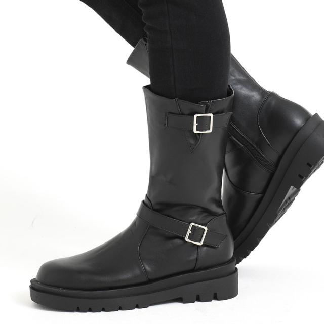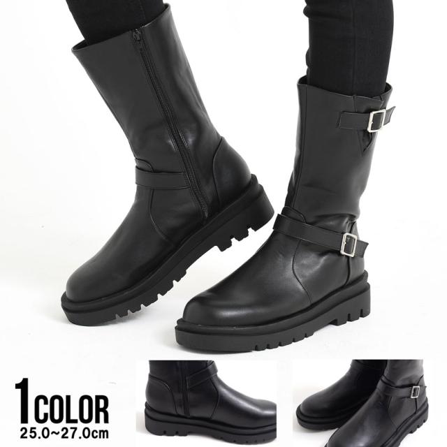 ブーツ メンズ ブランド おしゃれ 厚底 靴 シューズ エンジニアブーツ ミドルブーツ ベルト PUレザー フェイクレザー 合成皮革 合皮 歩きやすい 疲れにくい シンプル ユニセックス レディース ブラック 黒 25.0cm 25.5cm 26.0cm 26.5cm 27.0cm 大人 上品 きれいめ キレカジ モード カジュアル ストリート ストリート系 韓国 韓国系 韓国ファッション 下北沢 下北系 古着 古着系 90s 90年代 2000年代 Y2K 服 秋 冬 秋冬 男性 男 父の日 父の日ギフト 父の日プレゼント 20代 30代 40代 ファッション メンズファッション 東京 プレゼント 誕生日 記念日 贈り物 ギフト配送について