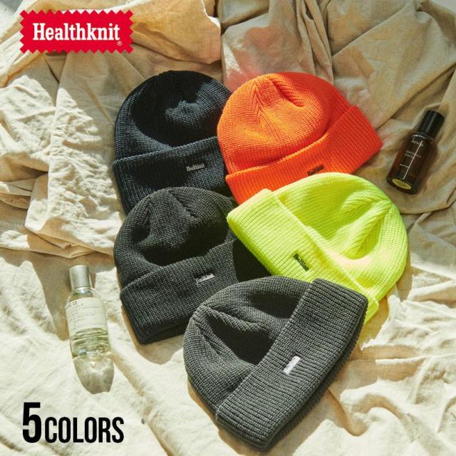 Healthknit ヘルスニット ニット帽 メンズ ワッチキャップ ブランド ニットワッチ ニットキャップ おしゃれ ロゴ ワンポイント シンプル ユニセックス レディース 男女兼用 ブランド イエロ— オレンジ ネイビー ブラック 秋冬 クリスマス プレゼント 即日発送 [291-4159]