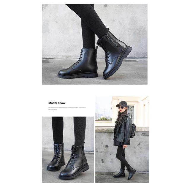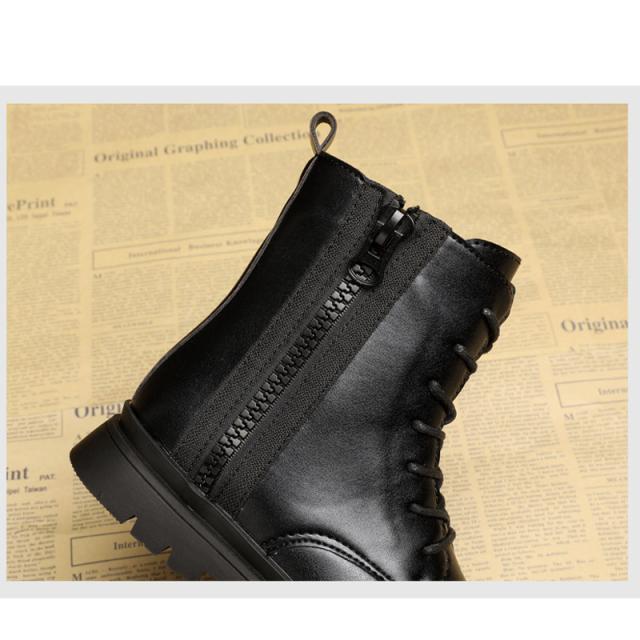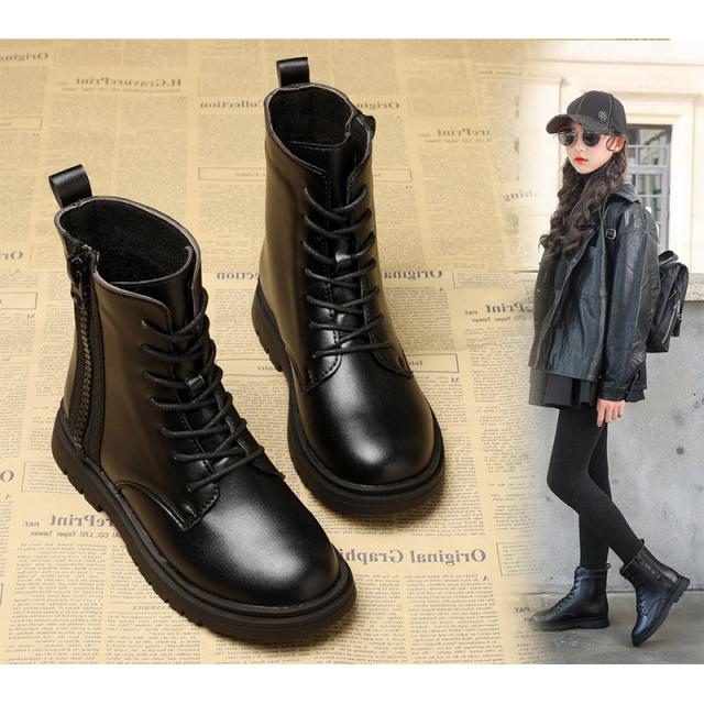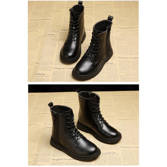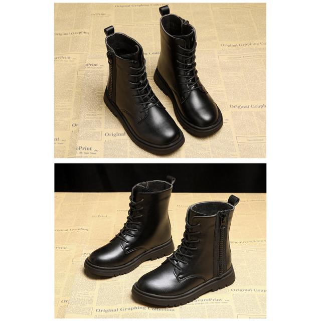ブーツ キッズ 編み上げブーツ 裏起毛 サイドジップ ローヒール 男の子 女の子 ジュニア 子供靴 レースアップシューズ ショートブーツ