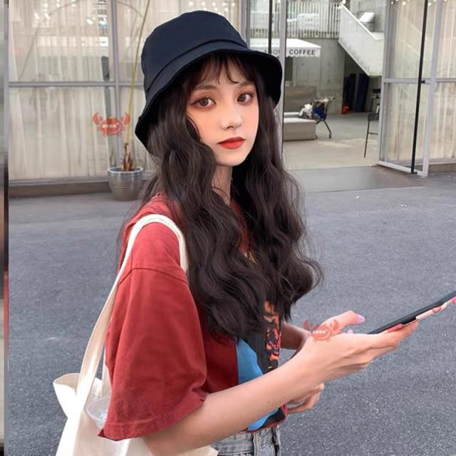 コンビニや、近くのスーパーのお買い物など、近距離のお出かけにも便利な髪付き帽子です。