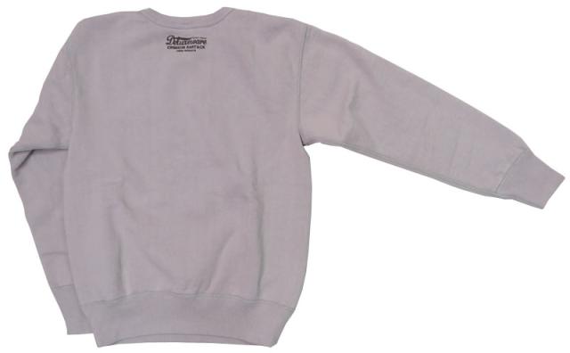 国内唯一の旧式吊編機による最高密度スウェットのシンプルロゴデザイン。