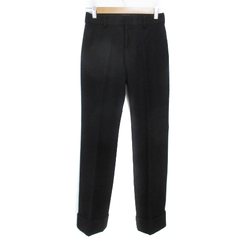 【中古】ミッシェルクラン スラックスパンツ ストレートパンツ ロング ロールアップ 36 黒 ブラック /FF9 レディース
