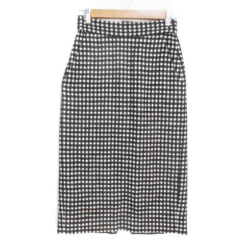 【中古】スローブ イエナ タイトスカート ロング丈 マキシ丈 ギンガムチェック柄 スリット 36 白 黒 レディース
