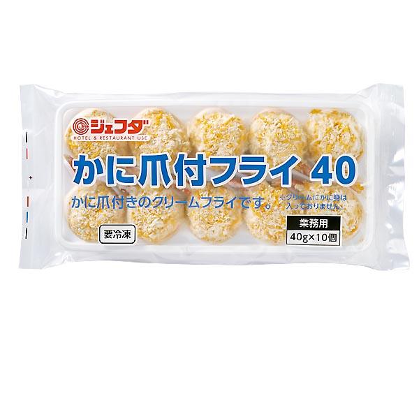 かにの爪が付いたクリームフライです。独自のホワイトソースに、色鮮やかな「かに爪」を付けました。【内容量:40g×10個/冷凍】