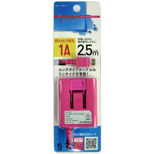 オズマ micro-B用AC充電器 1A 2.5m ピンク IAC-SP81LPN