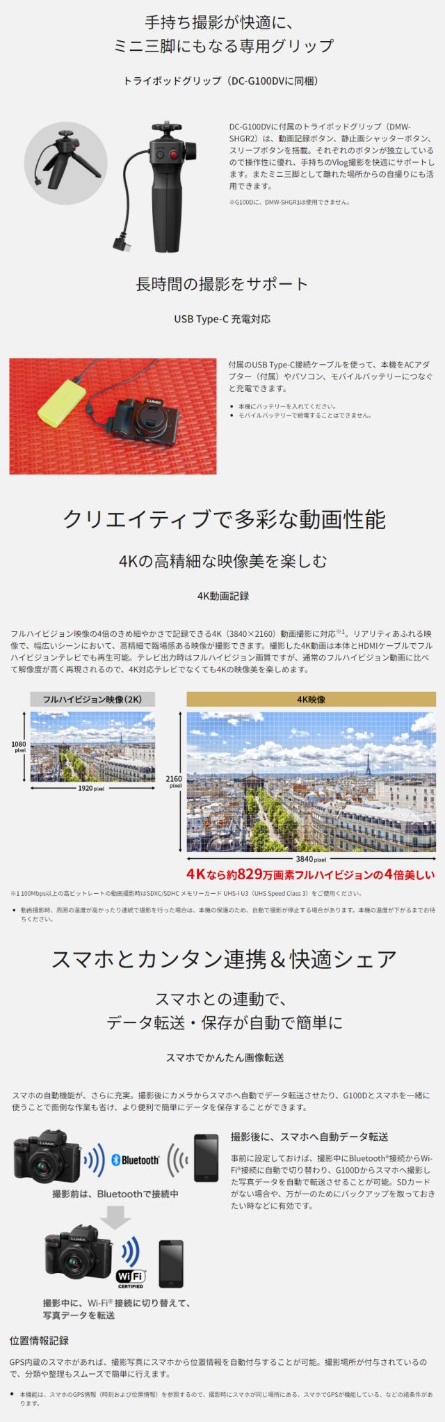 DC-G100DV-K(ブラック) LUMIX Vキット (標準ズームレンズ、トライポッドグリップ付属)ルミックス