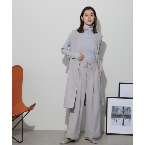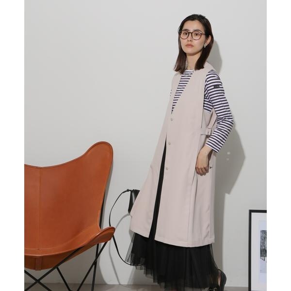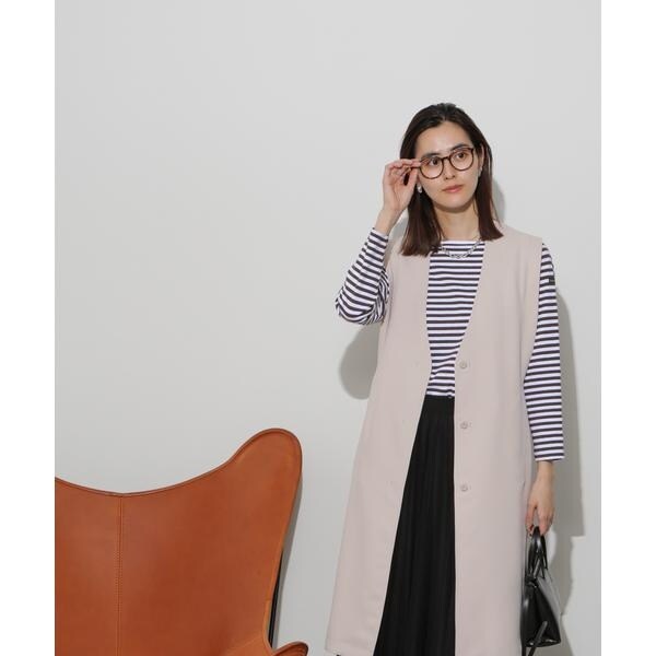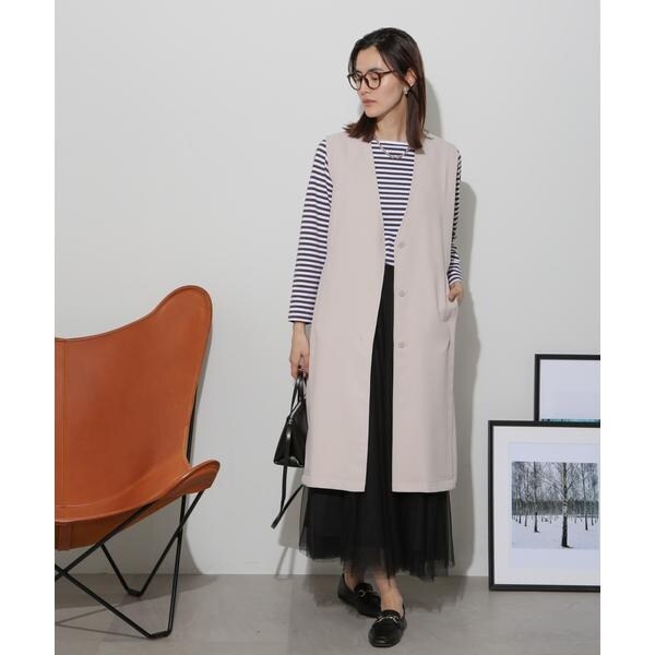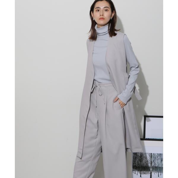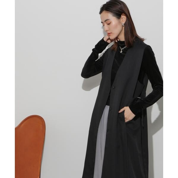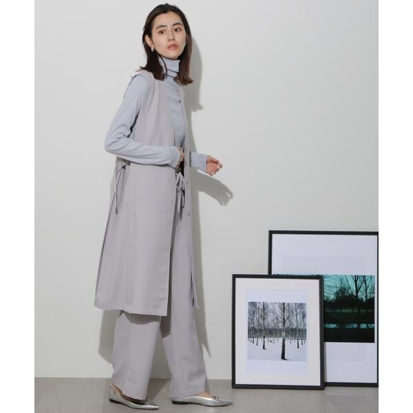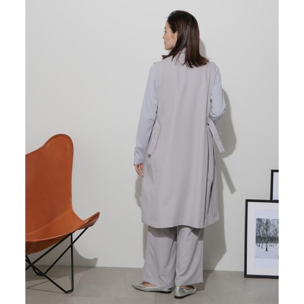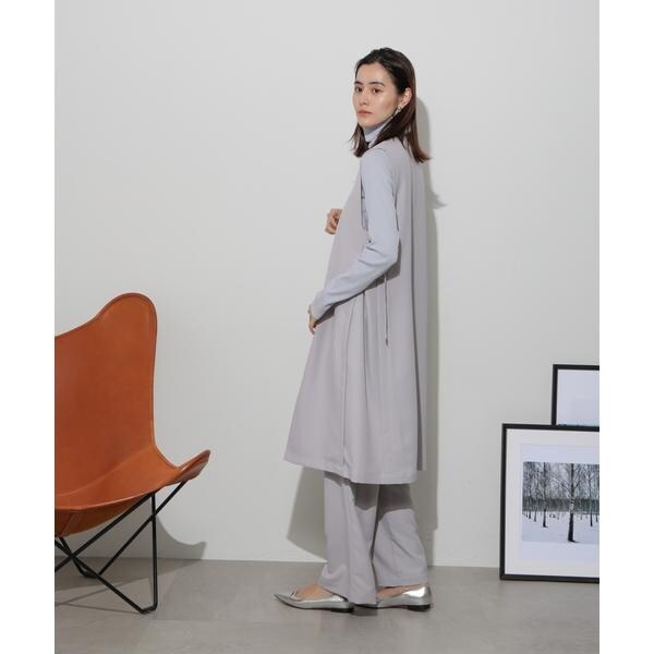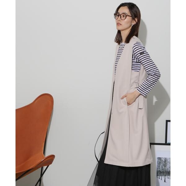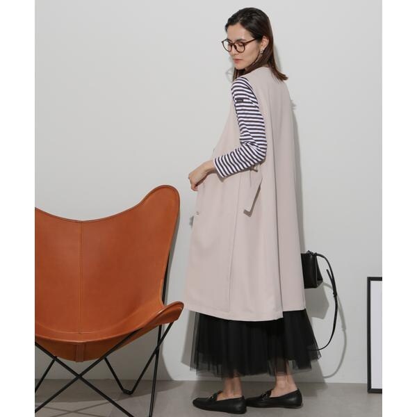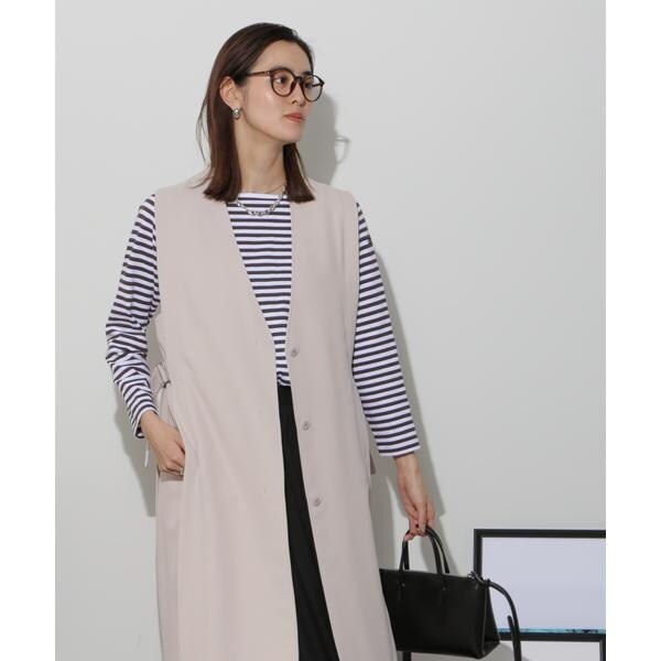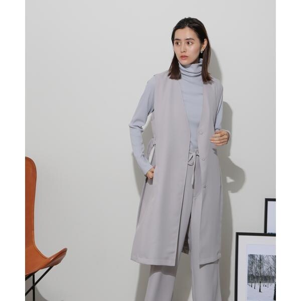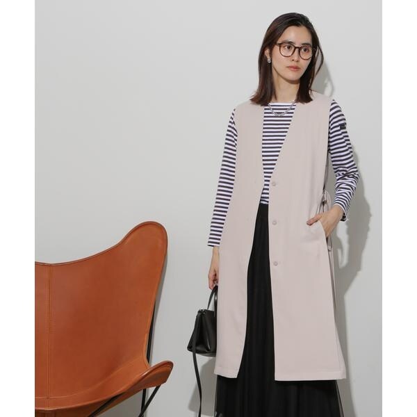 大人のレイヤードスタイルを楽しめるロングジレ。細見え効果のあるすっきりとした縦長シルエットで、サイドについたベルトディテールのアクセントが効いた一枚。前を開けてジレジャケット風に着こなしたり、同素材のパンツと合わせたきちんと感のあるセットアップスタイルもおすすめです。