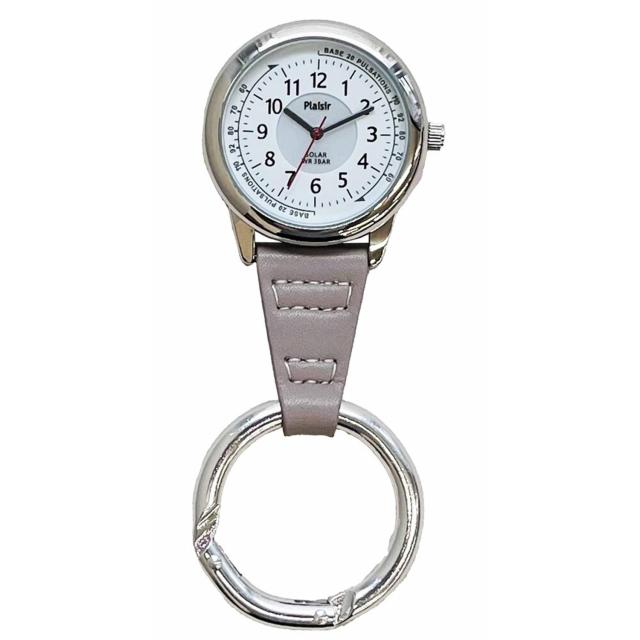 電池交換不要!ソーラー電池使用のカラビナウォッチが新発売♪【ソーラー電池】太陽や電気の光で充電し稼働するソーラー電池内蔵。電池交換が不要で使いたいとき、電池切れを気にせずに使えるのが魅力♪【蓄光文字盤】蓄光文字盤が暗い環境でも見やすさを確保。夜や暗い現場でも困らないのが特徴。【見やすい文字盤】文字盤の数字には、視認性の高いフォント(字体)を採用。見やすい文字盤は、忙しい現場でもしっかり時間を確認。【日常生活防水タイプ】うれしい3気圧防水(日常生活防水)仕様。洗顔や雨で少し水がかかる程度なら大丈夫♪(※プールや海でのご使用は故障の原因となるため、お控えください。)【カジュアルなハンギングウォッチ】ベルトの根本に付いたカラビナフックで、バッグのハンドルやベルト通しなどに引っ掛けて使える、フェミニンな雰囲気が魅力のカラビナウォッチ。【タイムキープにも大活躍】カラビナとベルト部分を折り返してデスクに置けば、オフィスでの会議や、受験など試験会場でのタイムキープにも大活躍。【さまざまな場面で】手元の作業を妨げないハンギングスタイルなので、医療現場で働く方や腕時計をつけられないお仕事の方、金属部分が肌に直接触れるのが心配な敏感肌の方にもピッタリ。