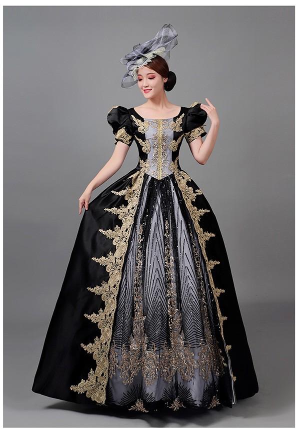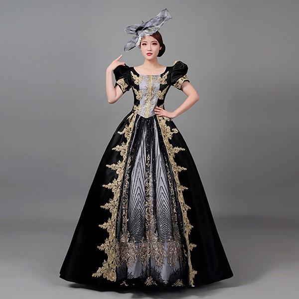 中世 貴婦人ドレス ステージ 衣装 中世ドレス ヨーロッパ 貴族 王族服 ジュリエット カラードレス 演出 現代劇演出 ヨーロッパ風 演出 パーティードレス ブラック eh150jc