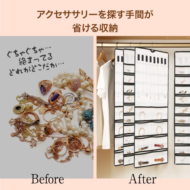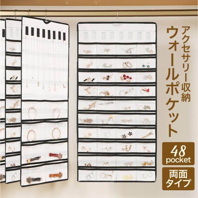 ウォールポケット アクセサリー 収納 吊り下げ 壁掛け ジュエリー 収納ケース 両面 48ポケット 8吊り下げ かわいい 便利 acc-pocket01