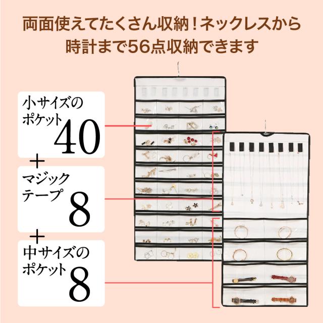 両面使えてたくさん収納!ネックレスから時計まで56点収納できます。