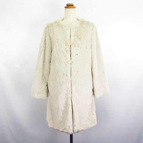 【中古】マーキュリーデュオ フェイクファーコート ノーカラー 長袖 ロング丈 F ベージュ ※EKM レディース