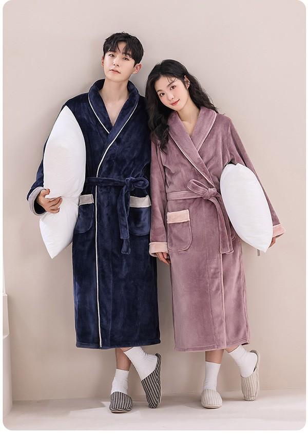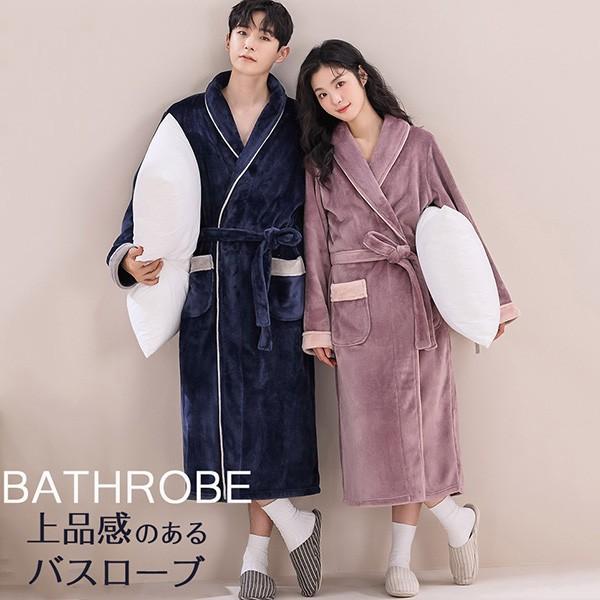 ペアパジャマ 冬 バスローブ メンズ レディース 男女兼用 お風呂上り ルームガウン ロング ナイトガウン 厚手 タオル地 部屋着 パジャマ カップル用 ロング あったか 帯巻き 防寒 暖かい 男性 女性 プレゼントpd031s1s1jc