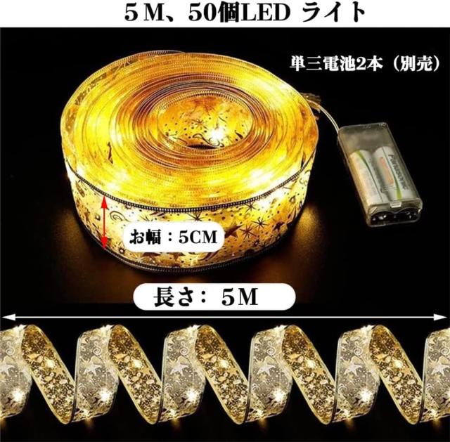 クリスマス イルミネーションライト 5M 50個LED電球 クリスマスツリー飾り リボンライト LEDストリ