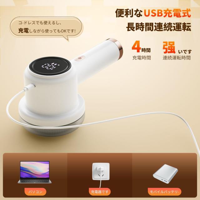 【充電式で使いやすく、旅行にも便利】この毛玉トリマーは、USB充電設計を採用しています。