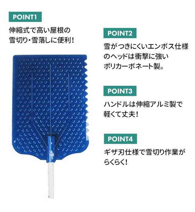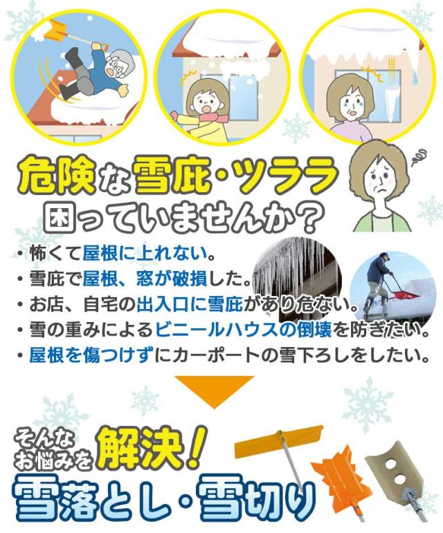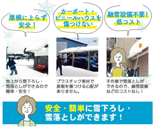 ●伸縮式で高い屋根の雪切り・雪落しに便利です。