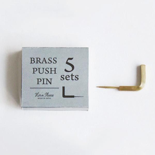 真鍮プッシュピン Lフック・5個セット【ブラス 画鋲 アンティーク風 ディスプレイ インテリア】