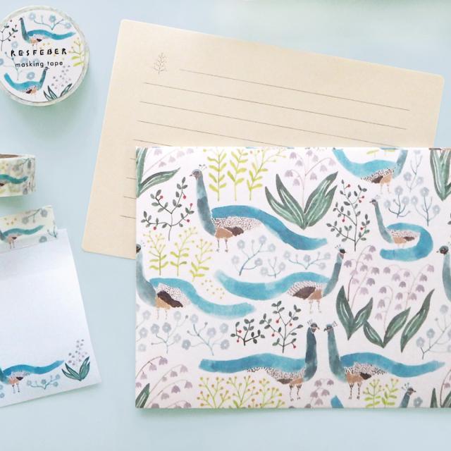 RESFEBER レースフェーベル 第2弾 レターセット|青山佳世 定型内 手紙 便箋 封筒 植物 花 鳥 孔雀 クジャク マトカ