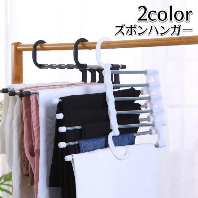 ズボンハンガー 5連 スラックスハンガー 2way 横向き 縦向き 省スペース 吊り下げ 皺防止 型崩れ防止 整理 整頓 コンパ