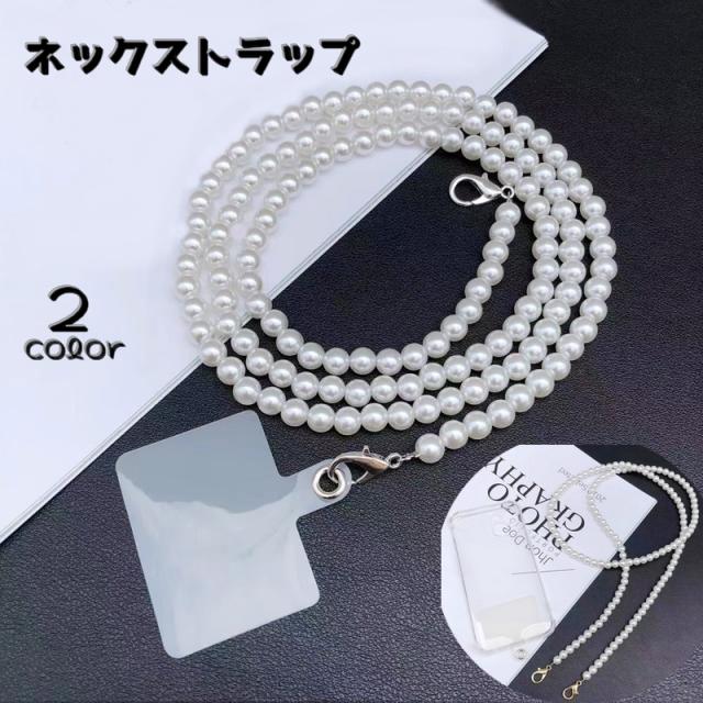ネックストラップ スマホストラップ スマホショルダー 首掛け 肩掛け 落下防止 紛失防止 フェイクパール 上品 おしゃれ 高級感