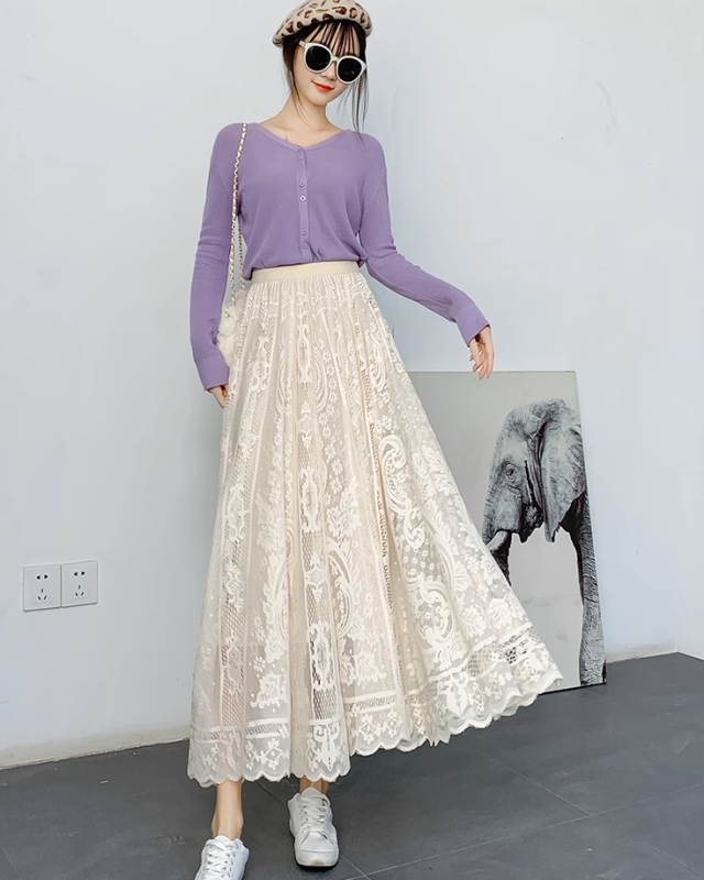 スカート レディース ロング丈 レーススカート 花柄 シアー レース 総レース Aライン フレア ミモレ丈 エレガント きれいめ 送料無料