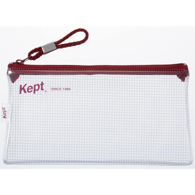 表が透明で中身がきれいに見えるクリアタイプのペンケース少し厚手の素材でできているから、形がしっかりしていて安心感抜群!透明度が高いのでお気に入りの文房具をいつでも眺められるし、背面のメッシュが丁度良い背景になるので写真移りもバッチリ!しっかりしたファスナー口と出し入れのしやすい長めの引手がトレードマークで、カラフルな5色をラインナップ大好きな文房具や小物を入れて、楽しみながら勉強に励めます。商品名:レイメイ藤井 ペンケース Kept クリア レッド KPF603R