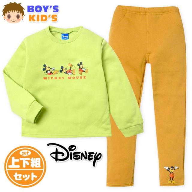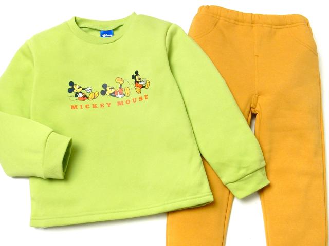 【送料無料】男児 キッズ 裏起毛 長袖 トレーナー スーツ 上下組 ミッキー あったか 保温性 男の子 iw-1000a-gn【メール便対応】