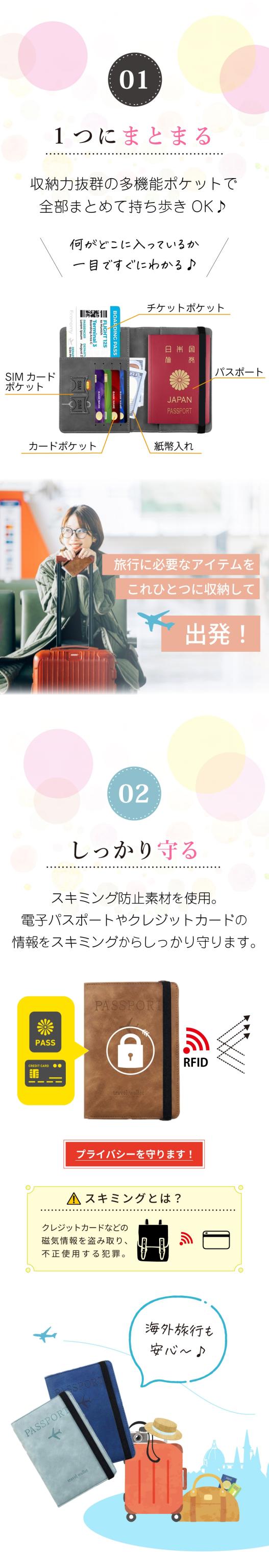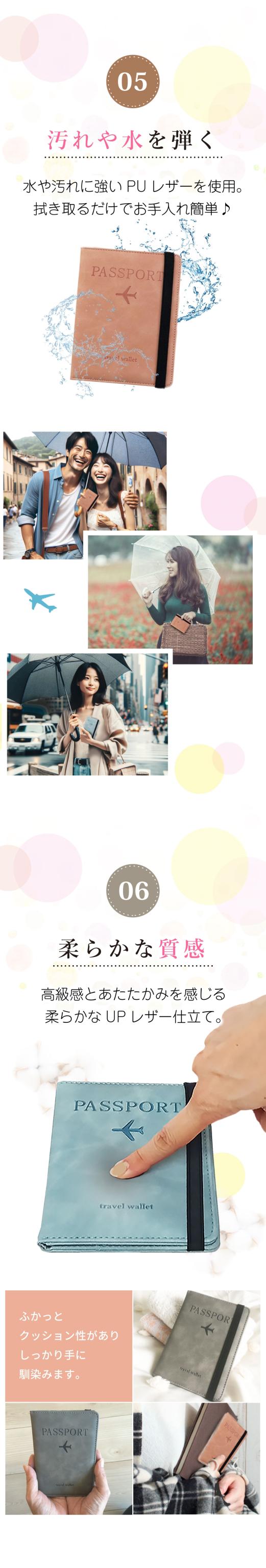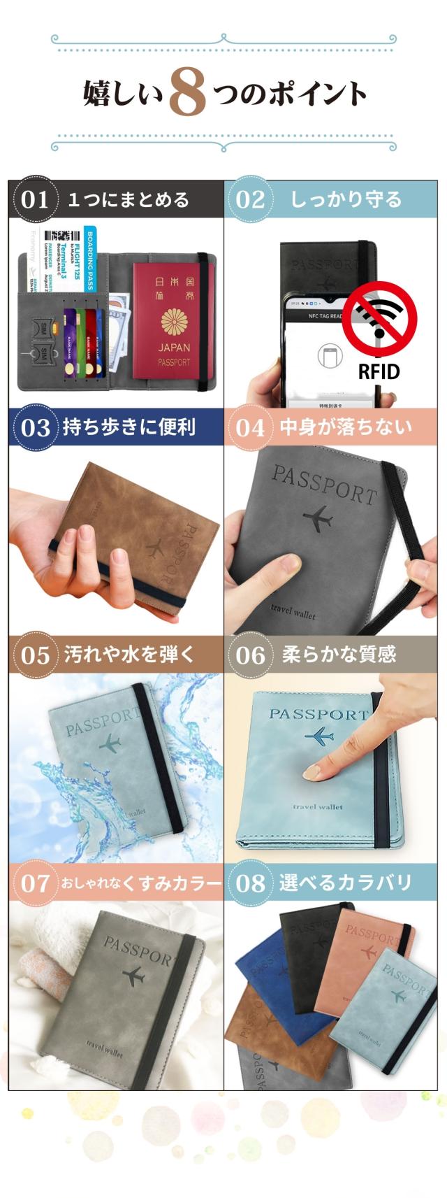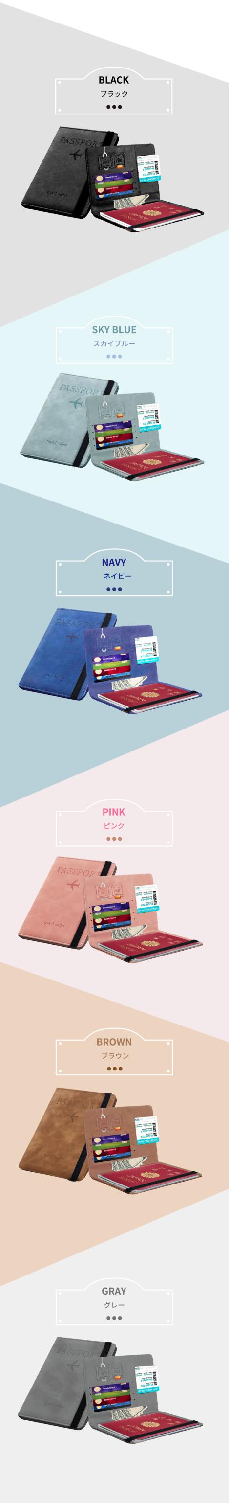 パスポートケース メンズ レディース スキミング防止 安全 海外旅行 パスポートカバー マルチケース チケットケース トラベルケース セキュリティポーチ クレジットカード トラベルウォレット ホルダー スモーキーカラー シンプル おしゃれ かわいい リノウル
