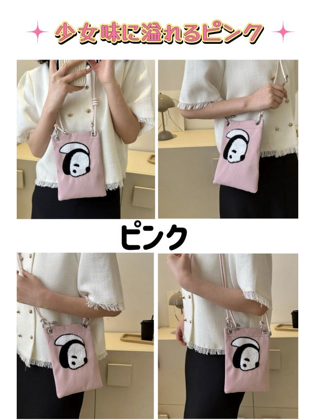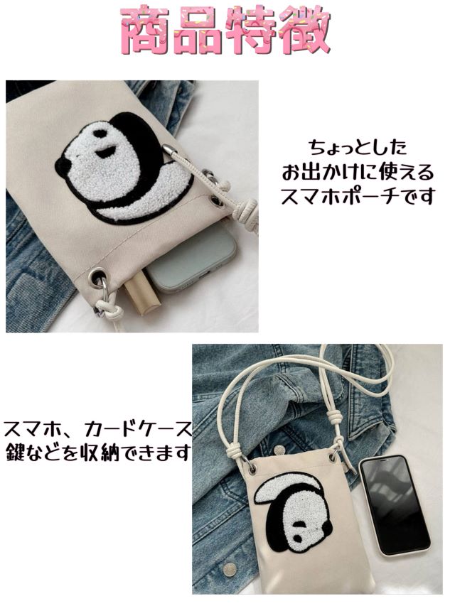 スマホショルダー スマホポーチ ショルダー スマートフォンポシェット お財布ショルダー パンダ スマホバッグ 可愛い 軽い 縦型 スマホポシェット 軽量 小さめ ミニバッグ 肩掛け 斜め掛け 軽い パンダデザイン プレゼント ギフト