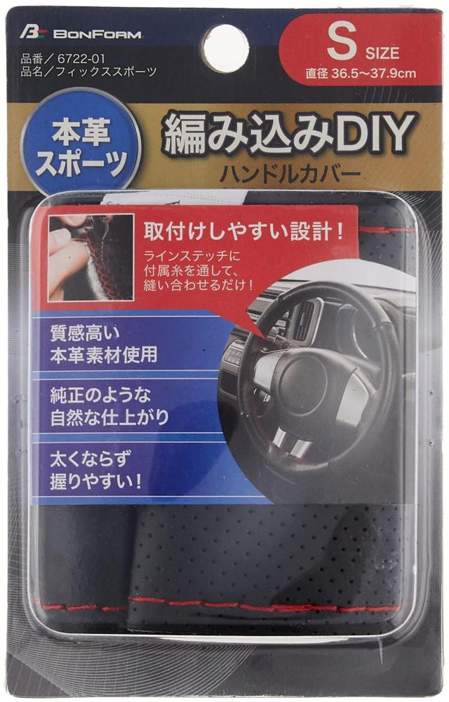 ◆商品名:ボンフォーム(BONFORM) ハンドルカバー フィックススポーツ 軽/普通車 ステアリングカバー 本革 S:36.5~37.9cm レッド 6722-01R