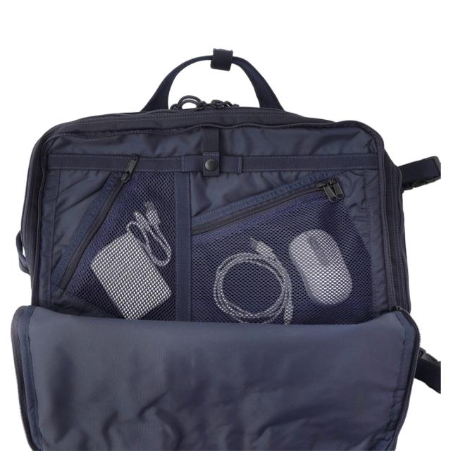 ガジェットなどの細かなアイテムもスムーズに収納できるポケットや仕切りを多く搭載しています。 POINT 01 真ん中の一番大きなメイン収納部は、 仕事で必要な書類の他、ポーチなどの 嵩張るアイテムも一緒にしっかり 収納することができます。