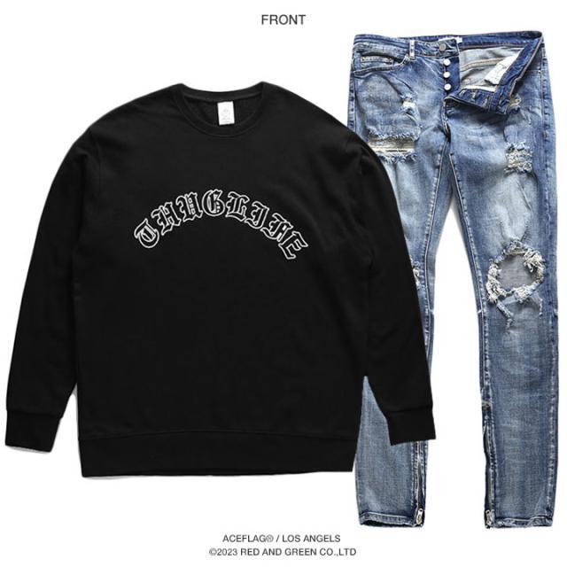ACE FLAG 上下セット 長袖 ブランド メンズ 黒 大きいサイズ エースフラッグ セットアップ トレーナー ジーンズ デニム スリム Thug Life サグライフ 2pac ローライダー b系 ヒップホップ ファッション ストリート系 ハイ 新作 AF-SE-SW-056