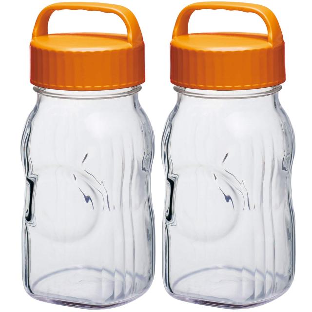 ◆商品名:東洋佐々木ガラス フルーツシロップビン 漬け上手 フルーツシロップびん 1500ml 2個セット オレンジ 保存瓶 保存容器 日本製 しおり付き