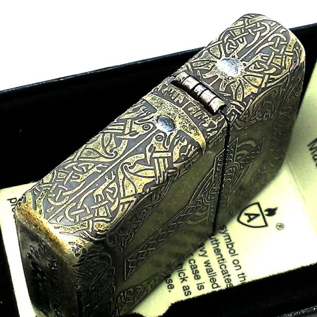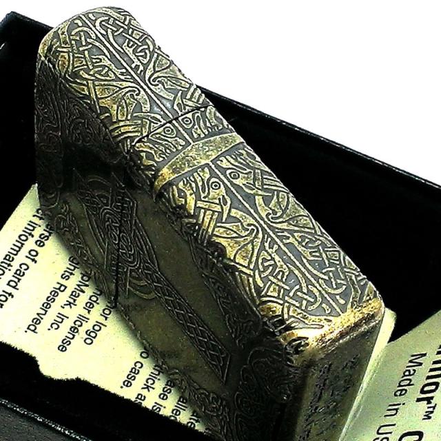 ZIPPO アーマー ジッポ ライター ケルティッククロス アンティークブラスバレル 4面加工 ケルト十字 ゴールド エッチング彫刻 重厚 かっこいい 動画有り